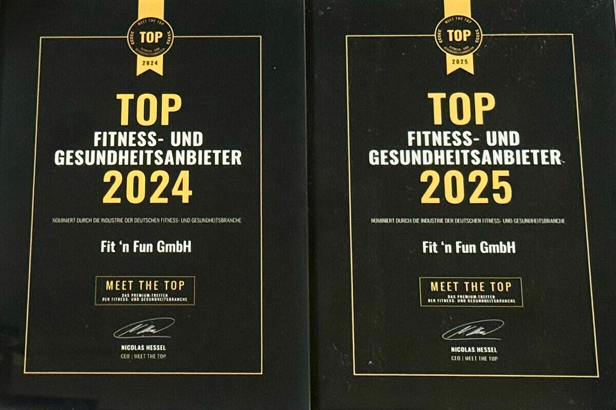 Wir freuen uns sehr: Fit ’n Fun wurde von MEET THE TOP – dem Premium-Treffen der Fitness- & Gesundheitsbranche – zwei Jahre in Folge als Top Fitness- & Gesundheitsanbieter ausgezeichnet.